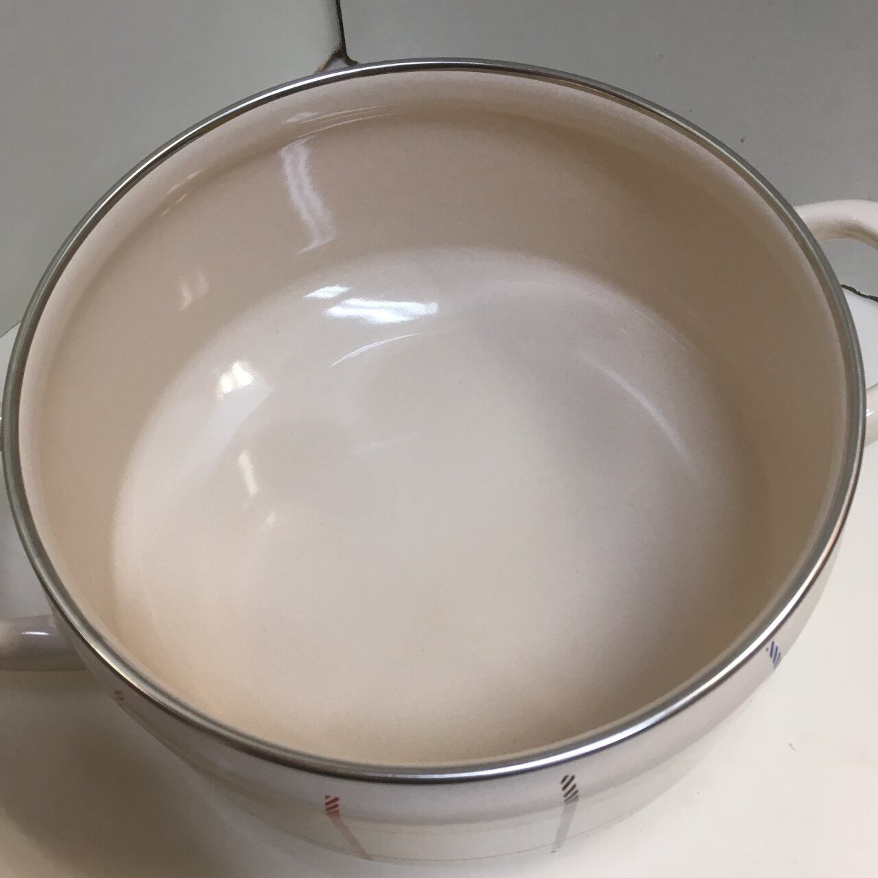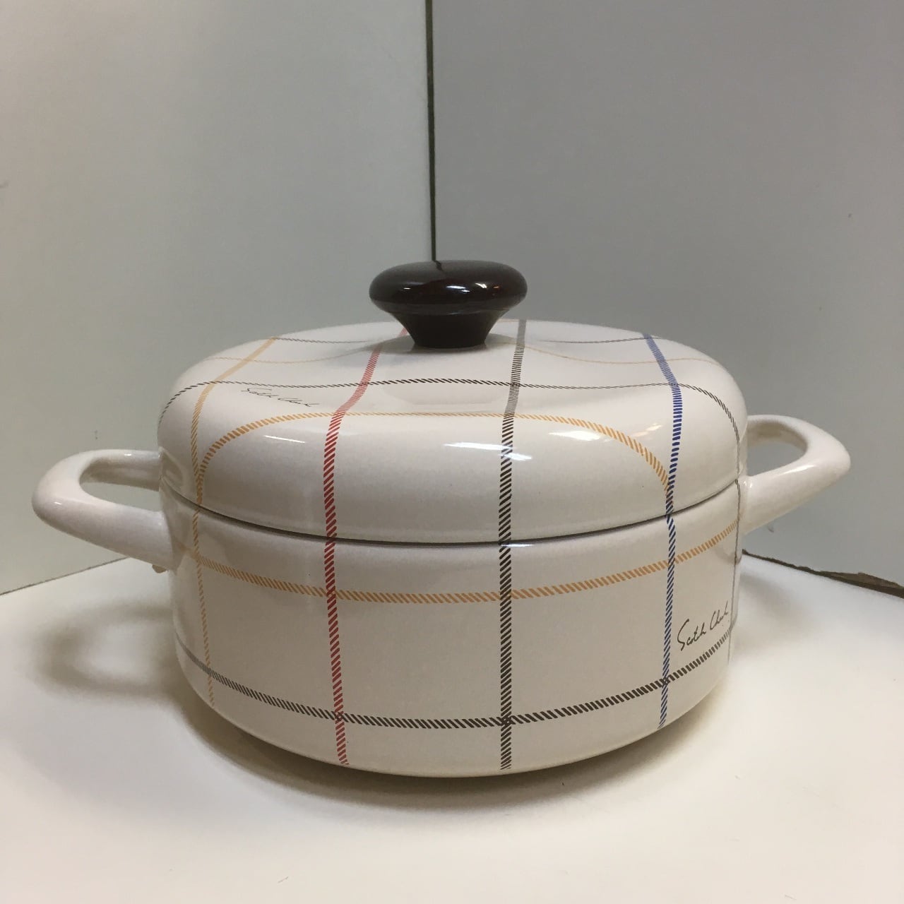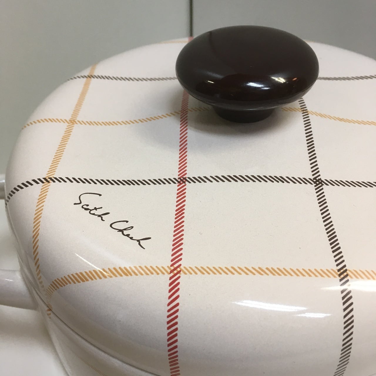 チェック模様のホーロー鍋です