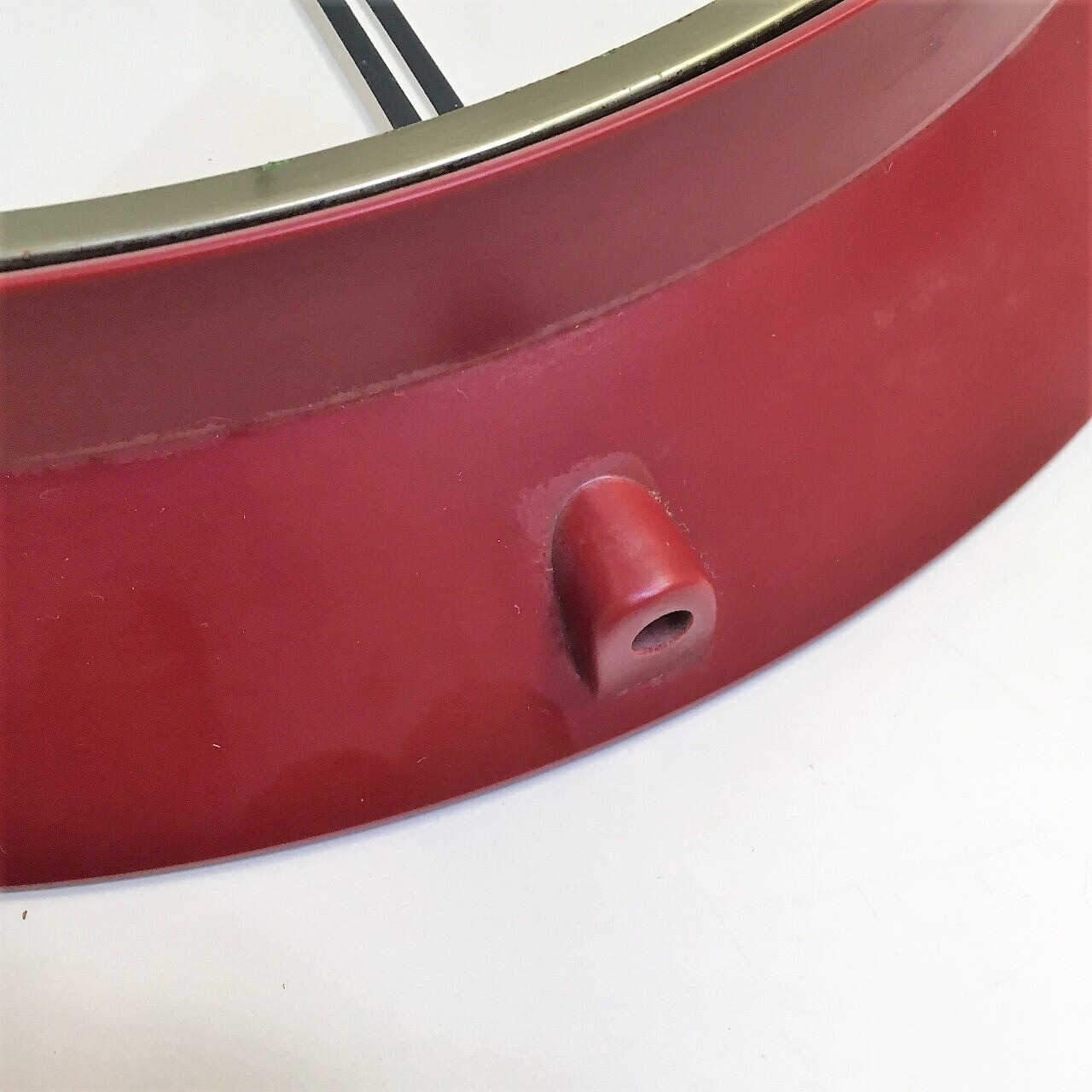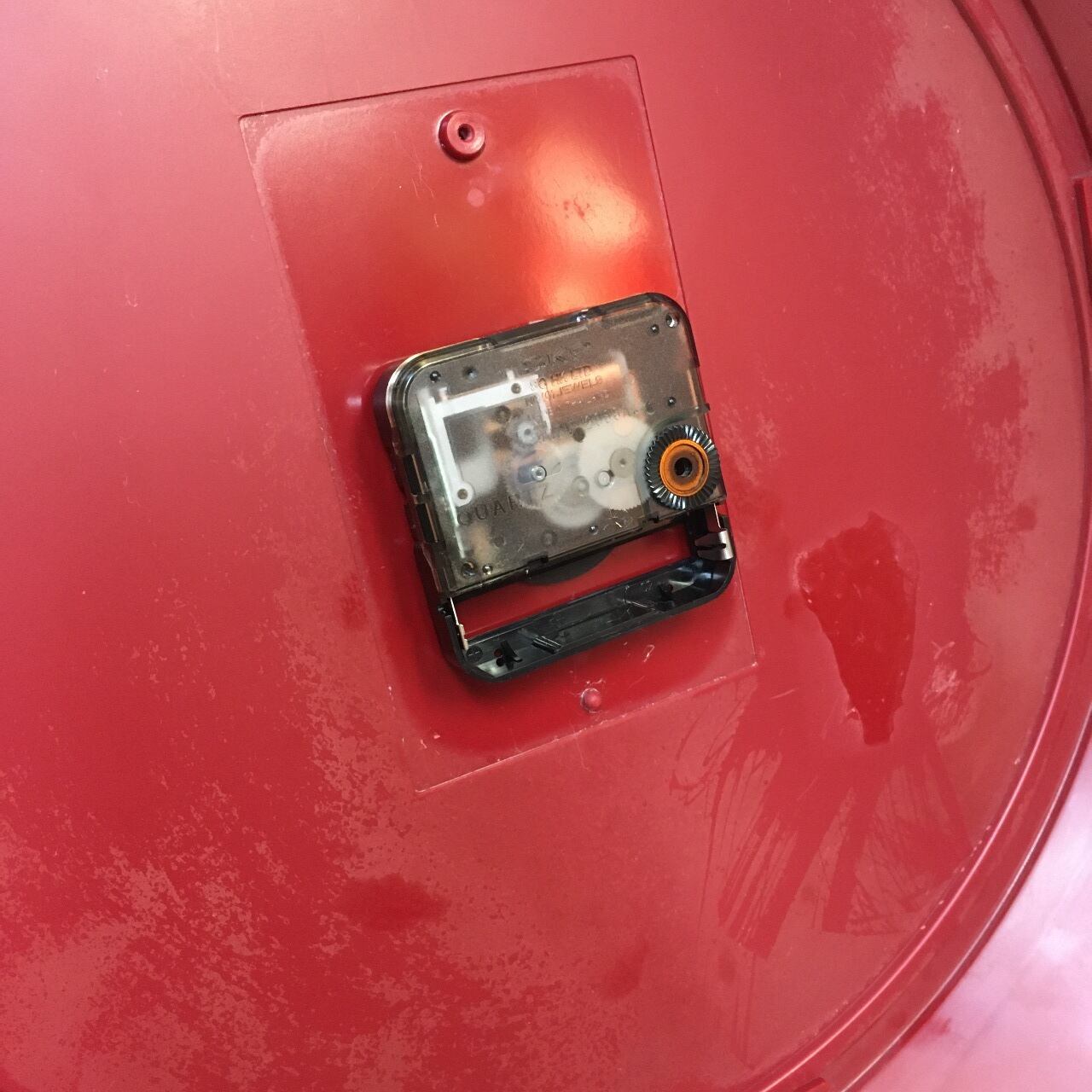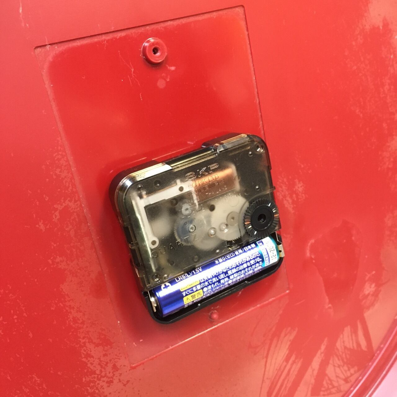 下部の穴は時刻合わせツマミの名残です