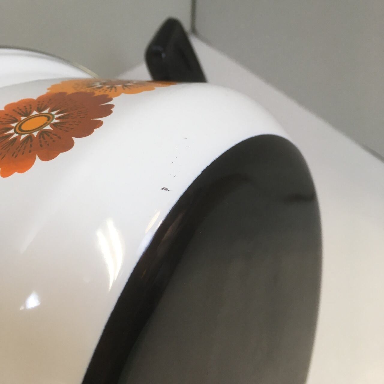 レトロなホーロー製の両手鍋【オレンジ/花柄】(0407237100)